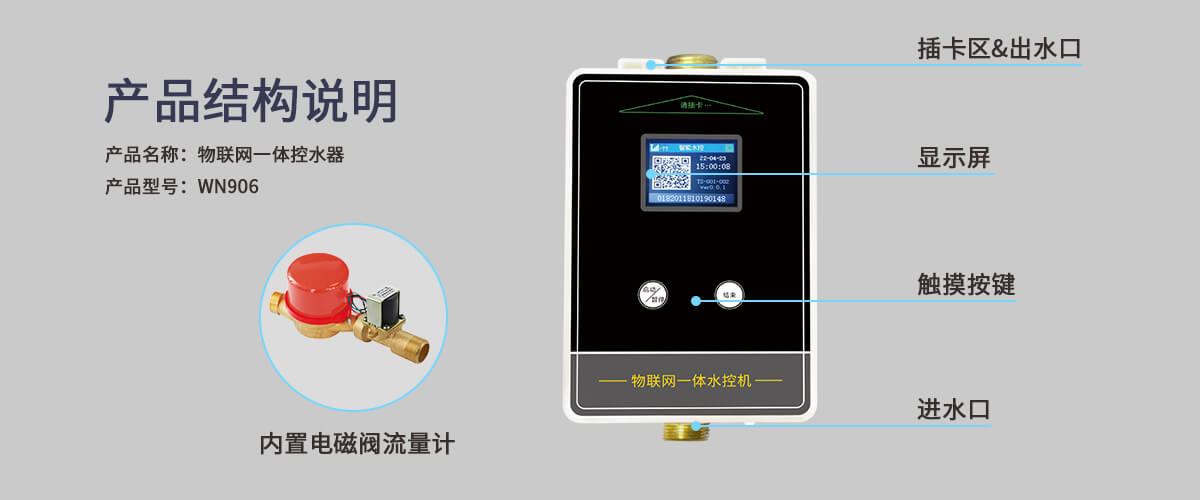 - 一體式全防水設計,內置電磁閥、流量計,安裝方便,進出水方向可調整;